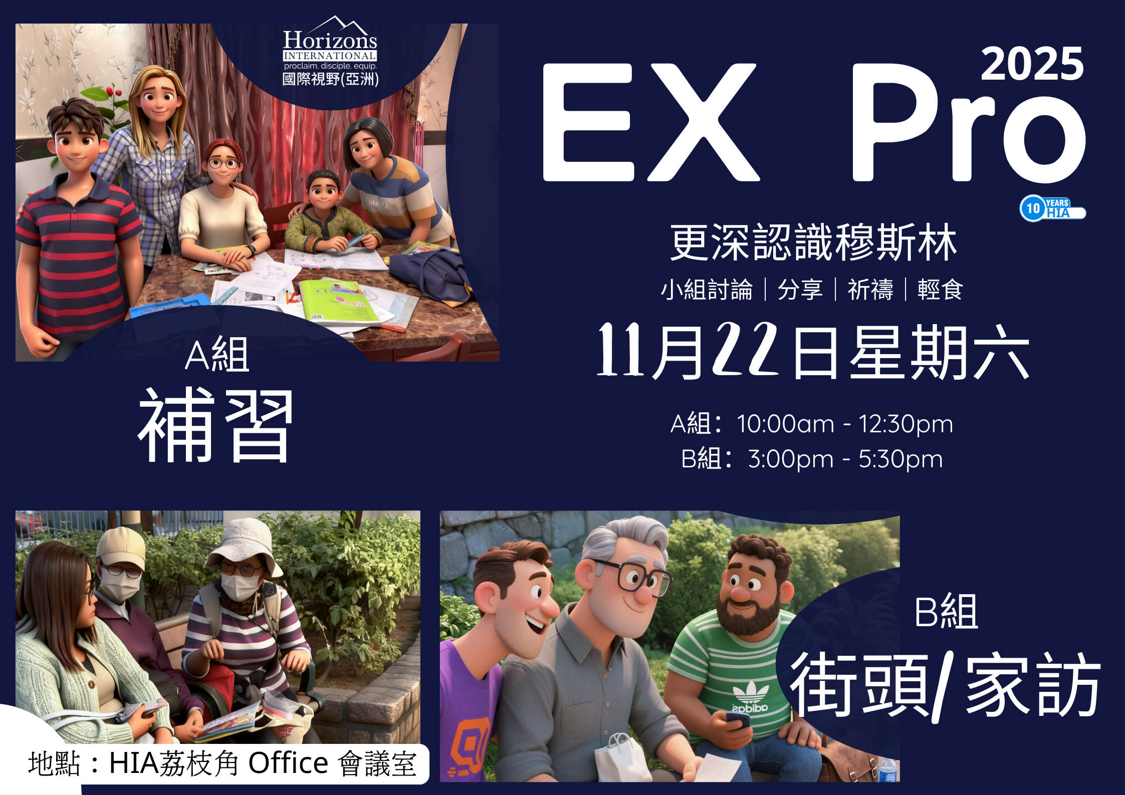 EX Pro 2025 日期:2025年11月22日星期六 A組 10:00am-12:30pm B組 3:00-5:30pm #請報名|預留坐位及膳食 地址:HIA Office 會議室 歡迎你們的參與 Welcome to join us